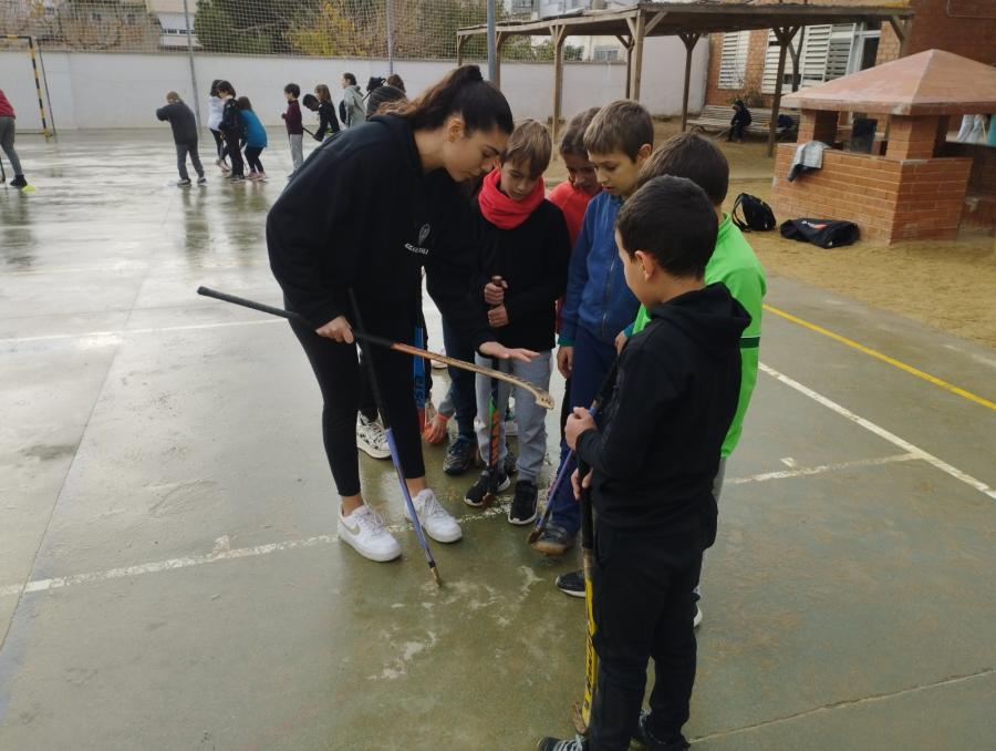 Aquest dimarts els nens i nenes d'escriptura i Colors hem rebut la visita de la millor jugadora d'hoquei patins del món: l'Aina Florenza. Abans que vingués vam llegir una noticia sobre tots els seus premis, en té molts! Aquesta setmana també li han donat el títol d'esportista mataronina i catalana de l'any. A la classe ens ha ensenyat a controlar la pilota i a conduir-la i després ens ha fet una demostració de com es tira un penalti. Alguns de nosaltres ens hem atrevit a posar-nos de porters i porteres per intentar aturar la pilota però era gairebé impossible. Ens ha fet molta il·lusió, gràcies Aina!